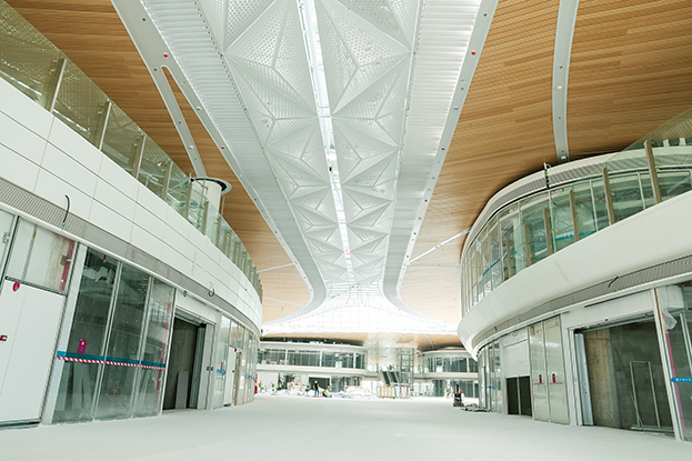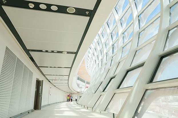 深圳机场卫星厅建筑面积23万多平方米,由中央、东南、东北、西南和西北五个指廊组成,分为地上四层、地下一层。作为唯一参与精装修的民营企业,BTY必一体育(B体育)官方网站_BTY必一体育官方网站主要负责深圳机场卫星厅2-3层西南、西北指廊,西双子星广场的精装修工程。